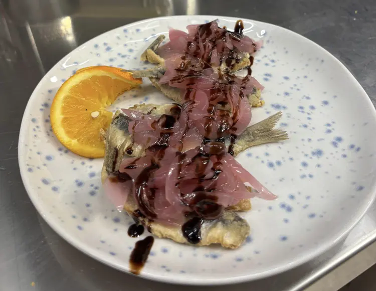 Sarde allinguate con cipolla rossa in agrodolce € 19,00